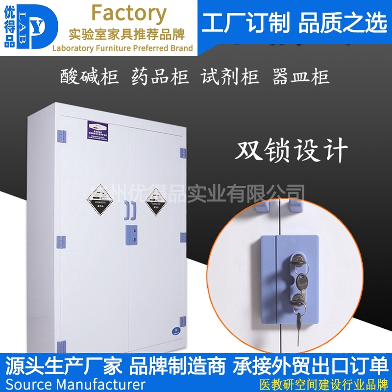 厂家出货存放强腐蚀品柜固耐安实验室双门PP药品柜带可视窗试剂柜